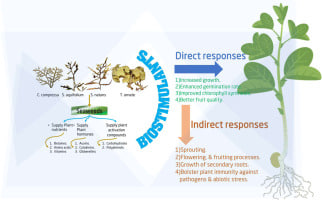 تُعتبر المستخلصات السائلة للأعشاب البحرية (SLEs) من المحفزات الحيوية المستدامة التي تُعزز نمو النبات ومقاومته للإجهاد، وقد حظيت هذه المستخلصات باعتراف متزايد. قيّمت هذه الدراسة تأثير المستخلصات السائلة المُستخلصة من أربعة أنواع من الأعشاب البحرية: Cystoseira compressa، وSargassum aquifolium، وSargassum natans، وTurbinaria ornate، على أداء بادرات نبات الفول (Vicia faba L.). تم نقع البادرات أسبوعيًا في هذه المستخلصات، التي تم تحليلها كيميائيًا لتحديد محتواها من العناصر الغذائية الكبرى والصغرى، والمعادن، والمركبات الفينولية، ومنظمات نمو النبات. أظهرت جميع المعالجات بالمستخلصات السائلة تحسنًا ملحوظًا في نمو الجذور، ونشاط الإستراز، وتراكم السكريات الذائبة مقارنةً بالعينات الضابطة (p ≤ 0.05). وأظهر مستخلص C. compressa، الغني بحمض الإندول-3-أسيتيك (IAA؛ 15 نانومول)، أقوى تأثير على الخصائص المورفولوجية للجذور. أظهرت مستخلصات نباتي S. aquifolium و S. natans، الغنية بالمركبات الفينولية، تحسناً ملحوظاً في الحالة الغذائية للنبات وإنتاجيته، بينما حفز نبات T. ornata بشكل أساسي استطالة الجذور دون تأثيرات ملحوظة على التغذية. ولوحظت علاقة واضحة بين تركيب المستخلص والاستجابة الفسيولوجية. تُبرز هذه النتائج إمكانات المحفزات الحيوية المستخلصة من الأعشاب البحرية في تحسين إنتاجية المحاصيل من خلال مدخلات طبيعية فعّالة في استخدام الموارد، مما يُسهم في الزراعة المستدامة ويدعم أهداف الأمم المتحدة للتنمية المستدامة. كما يُعزز استغلال الكتلة الحيوية البحرية في الزراعة استراتيجيات الاقتصاد الأزرق، لا سيما في منطقة البحر الأحمر.