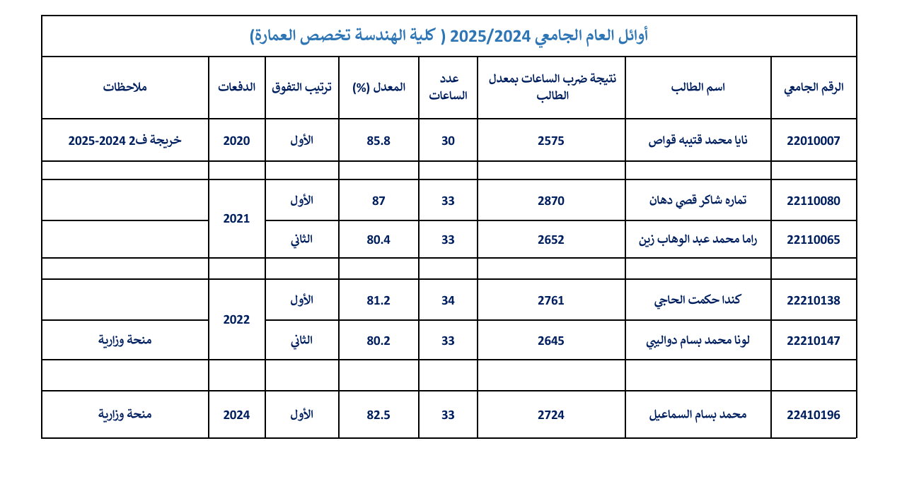 الطلبة الأوائل لكلية الهندسة المعمارية