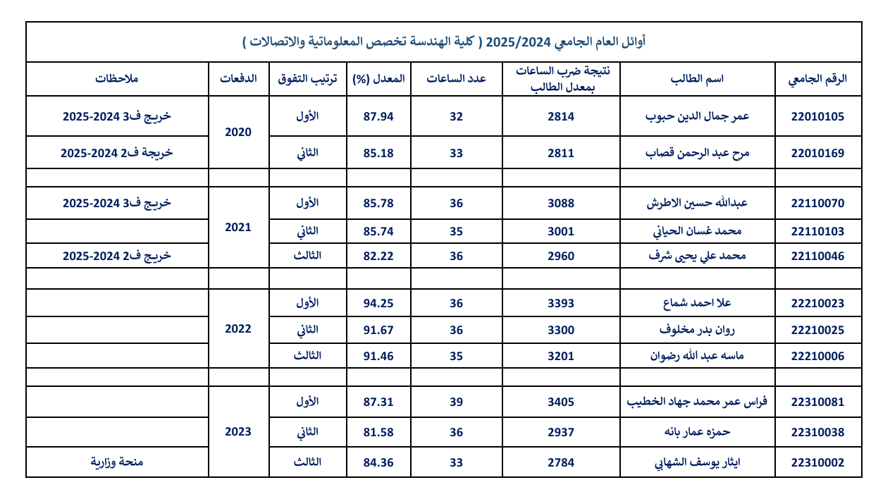 الطلبة الأوائل لكلية الهندسة المعلوماتية و الاتصالات